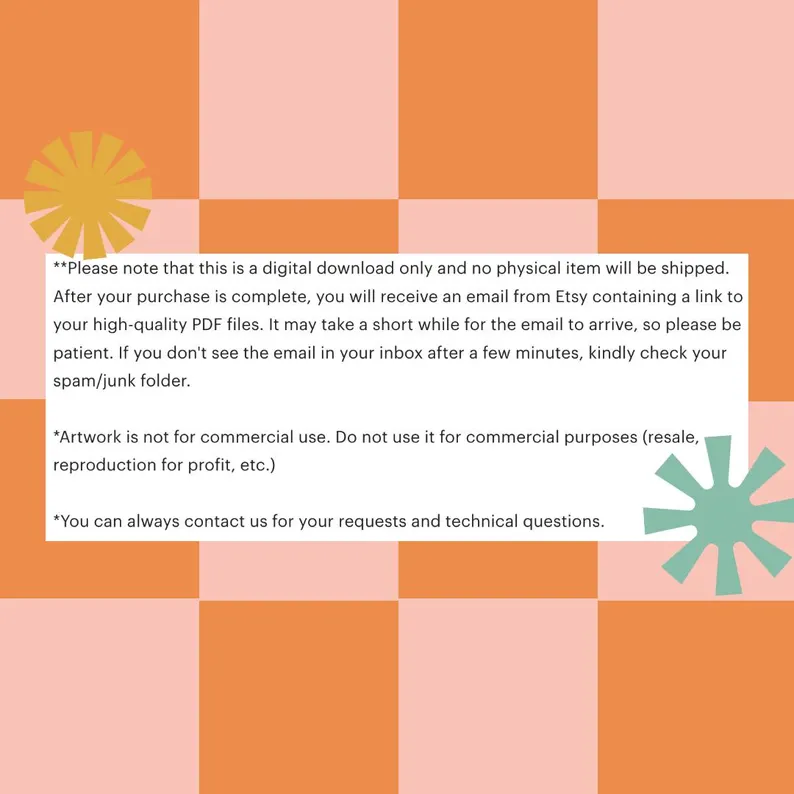 **Please note that this is a digital download only and no physical item will be shipped. After your purchase is complete, you will receive an email from Etsy containing a link to your high-quality PDF files. It may take a short while for the email to arrive, so please be patient. If you don’t see the email in your inbox after a few minutes, kindly check your spam/junk folder.