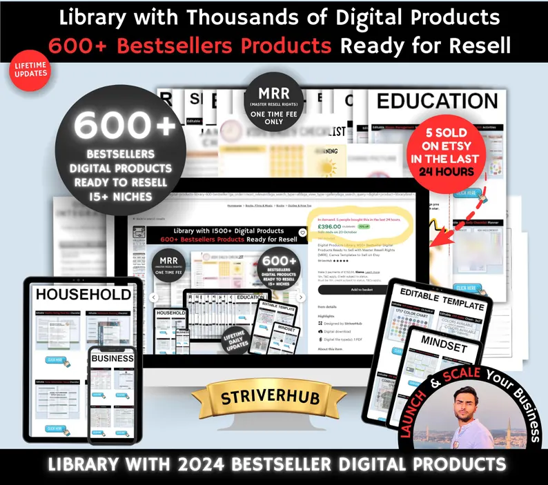 Digital Products Library, 600+ Bestseller Digital Products Ready to Sell with Master-Resell-Rights (MRR), Mrr Plr Canva Templates to Sell